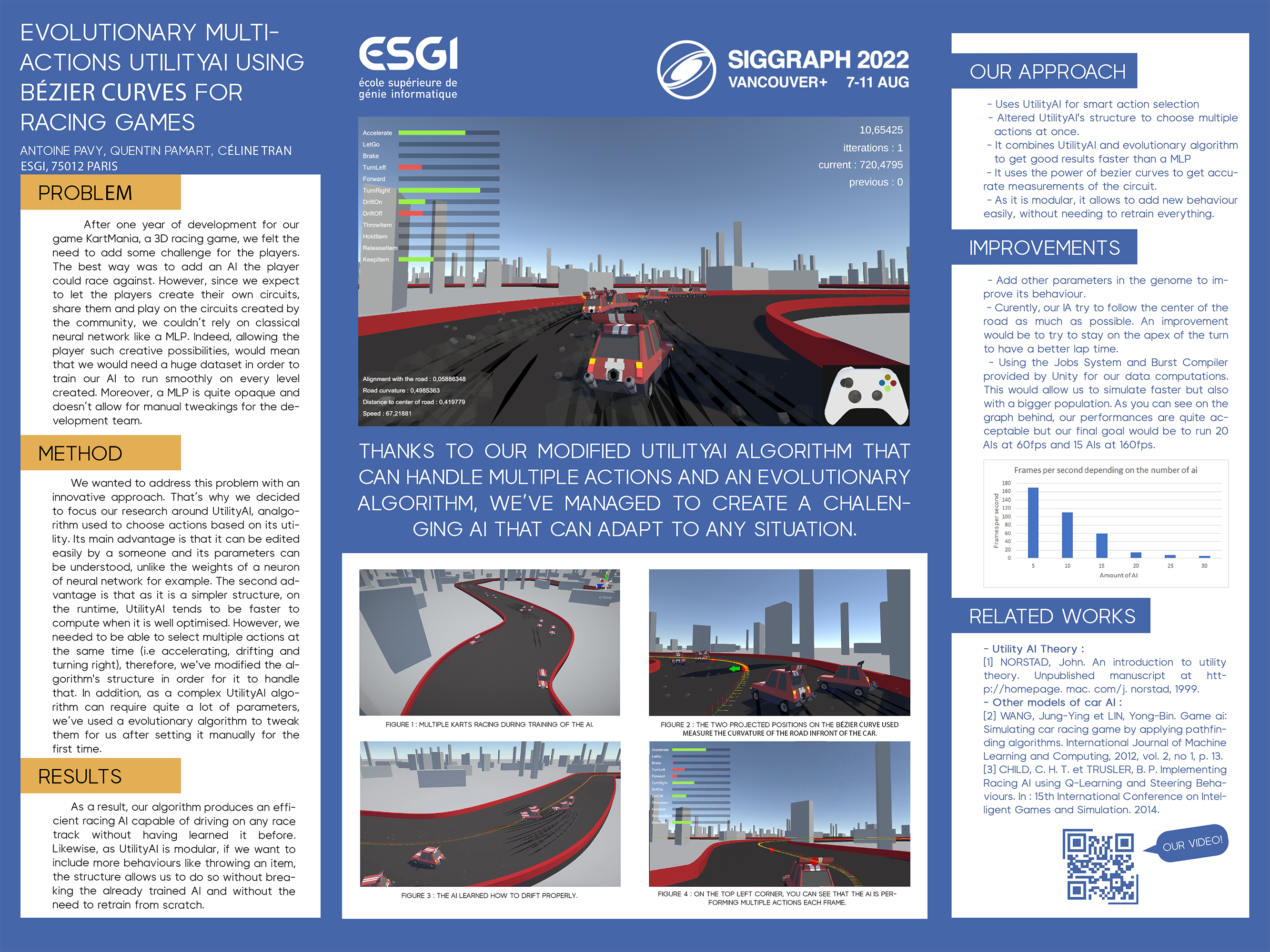 Cette année, j'ai eu l'occasion de participer au SIGGRAPH 2022, en publiant un poster de recherche sur la réalistation d'une IA de jeu de course